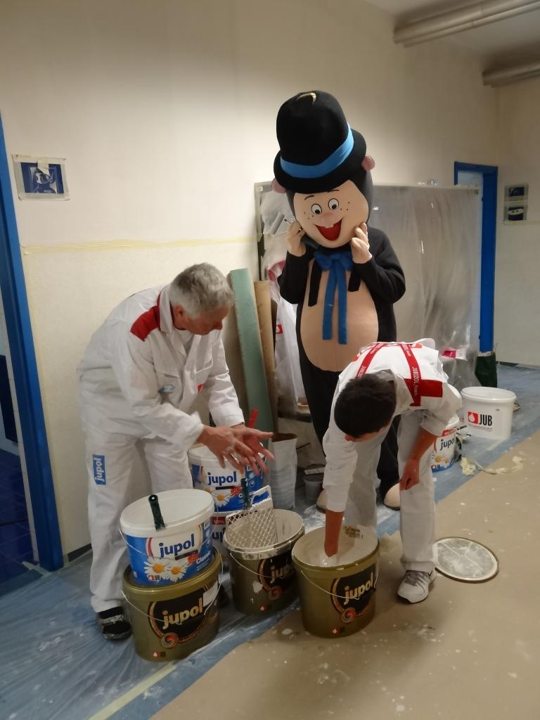 JUB humanitarno akcijo podpira že vsa leta, saj zagotovi vse potrebne barve in premaze ter nastopa v vlogi glavnega sponzorja akcije. Barvne študije so skladno z željami osebja pripravili naši arhitekti, za prenovo pa smo zagotovili tudi 950 litrov barve. Vrednost del in materiala je ocenjena na več kot 65.000 EUR. Podporniki akcije so poleg vseh udeležencev slikopleskarjev in OZS še podjetja ter območne obrtne zbornice.