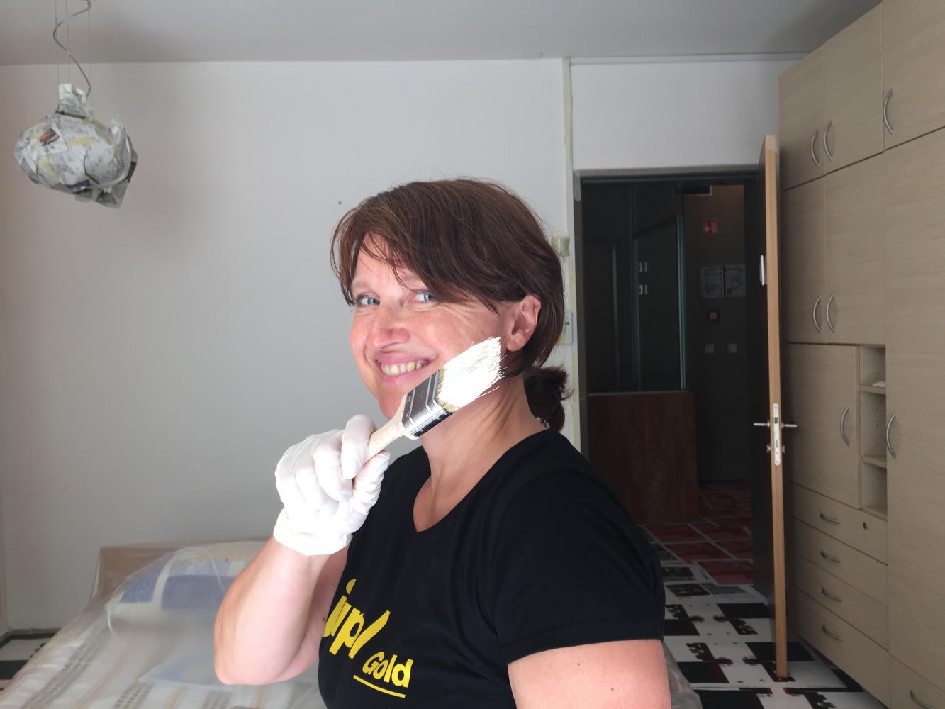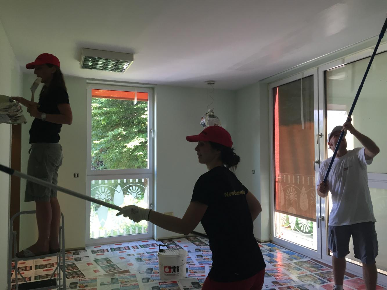V Hiši hospica v Ljubljani je v petek, 17. julija, vse popoldne intenzivno potekala akcija pleskanja prostorov v prvem nadstropju objekta, v katerem že dva meseca zaradi pomanjkanja finančnih sredstev ne morejo sprejemati uporabnikov in opravljati nujne paliativne oskrbe. Po predvidevanjih naj bi se dejavnost v stavbi, ki stoji v zelenem zavetju ljubljanskega Golovca, vendarle nadaljevala že to jesen, zato so organizatorji v času začasnega zaprtja priskočili na pomoč in pomagali prebarvati prostore, ki so bili po petih letih praktično nujno potrebni tovrstne prenove.