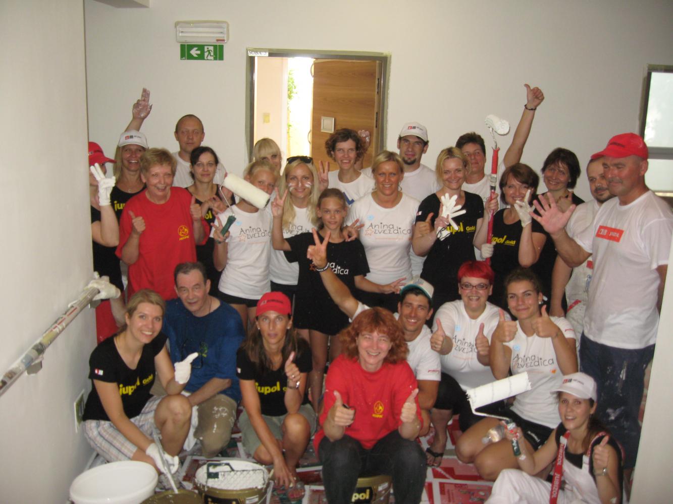 Pleskanja sten in stopov se je lotilo 25 prostovoljcev, med njimi 15 zaposlenih iz družbe JUB in 10 prostovoljcev iz zavoda Anina zvezdica. Skupina JUB, ki svoj jubilej ob 140. obletnici v letu 2015 obeležuje z veliko humanitarno akcijo, je namreč Hiši hospica najprej podarila barve iz družine JUPOL, količina pa bo zadoščala za prenovo celotnega objekta. Stavba z 850 kvadratnimi metri v pritličju in dveh nadstropjih ima približno 3.200 kvadratnih metrov notranjih zidnih in stropnih površin. V prvem nadstropju so tako prostovoljci z novimi barvami osvežili 6 sob s pripadajočimi kopalnicami ter hodnik, medtem ko bodo preostale površine v stavbi prenovili najemniki do predvidoma konca avgusta letos.